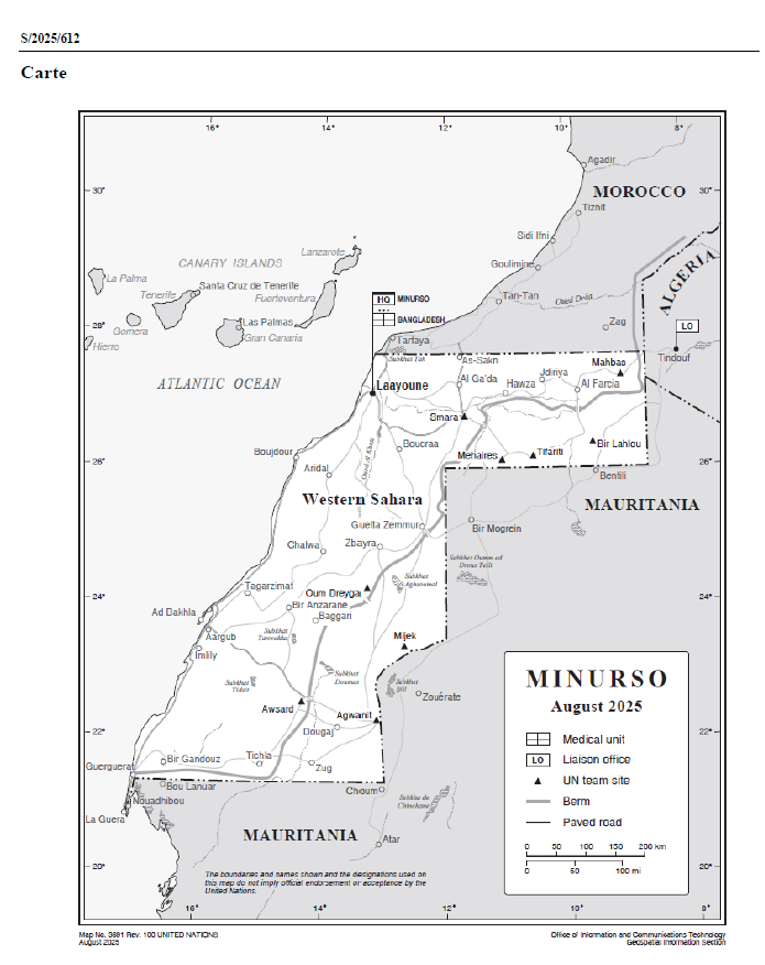Sigo profundamente preocupado por la situación en el Sáhara Occidental y por el endurecimiento de las condiciones sobre el terreno que siguen obstaculizando los progresos hacia una solución política al conflicto. El quincuagésimo aniversario del conflicto, en noviembre de 2025, pone de relieve la prolongación de este estado de cosas preocupante, pero también hace necesario un nuevo esfuerzo encaminado a acelerar la solución de este conflicto de larga data. Es urgente desbloquear el estancamiento, en interés del pueblo del Sáhara Occidental y de sus aspiraciones, y con miras a preservar la estabilidad y estimular el desarrollo en la región y más allá.