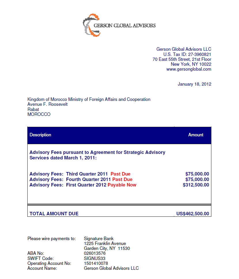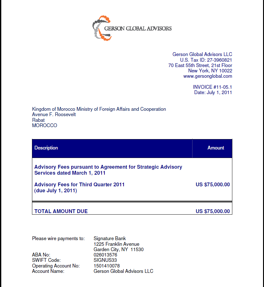 En 2011, le Maroc, via l’Agence Marocaine de Coopération Internationale (AMCI) a signé un contrat avec la société de lobbying Gerson Global Strategic Advisors portant sur la somme de 2,5 millions de dollars annuels.