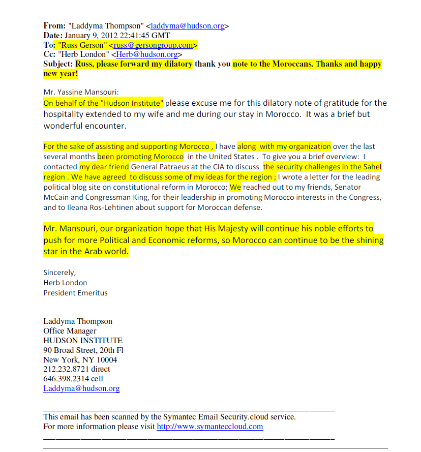 « Lobbyiste attitré de Rabat depuis quelques mois, écrit Maghreb Confidentiel dans son édition nº965, Gerson Global Strategic Advisors s’est attaché les services de Brown Lloyd James pour assurer la communication du royaume aux Etats-Unis ».