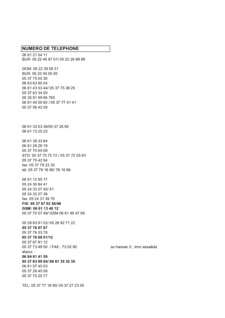 M MOHAMED MOUATASSIM 504 05 37 76 98 85 / 05 37 76 82 29