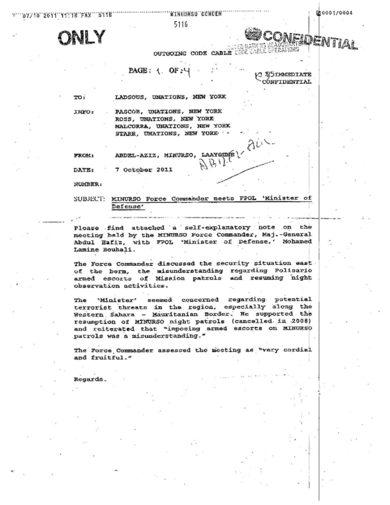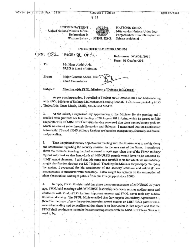 Tags : Morocco Moroccoleaks, Western Sahara, Frente Polisario, MINURSO, General Abdul Hafiz, Mohamed Lamin Bouhali, Military Agreement No. 1,