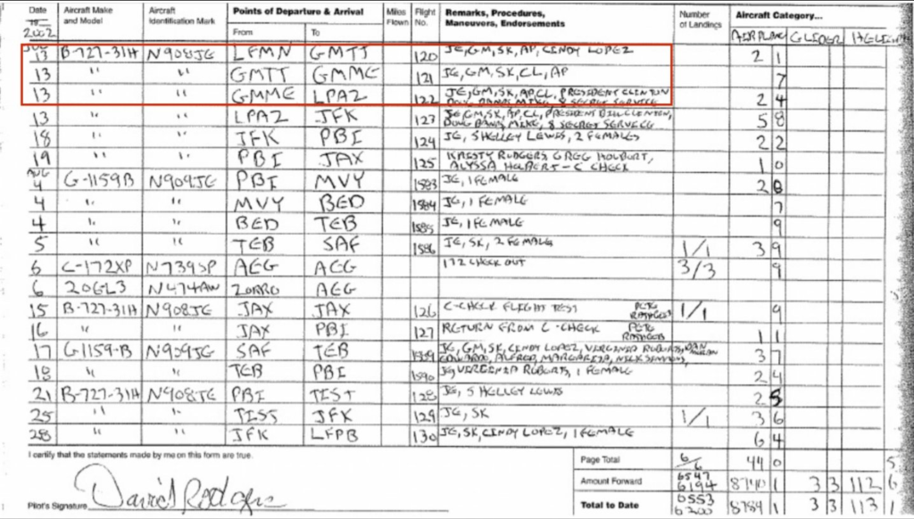 On one of these flights, Bill Clinton and Jeffrey Epstein, accompanied by the underage girl and others, arrived in Rabat on July 13, 2002