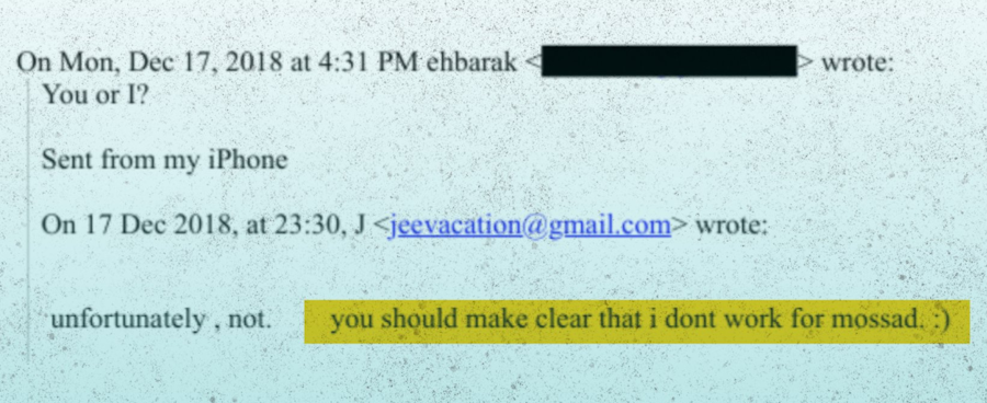 In a 2018 email exchange, Epstein wrote to him: « You should make it clear that I don’t work for Mossad. »