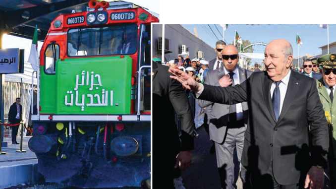 Notre pays vit, ce mois-ci, au rythme d’une réalisation historique d’envergure avec le lancement officiel par Monsieur le Président de la République Abdelmadjid Tebboune, chef suprême des forces armées, ministre de la Défense nationale, de l’exploitation de la ligne minière ferroviaire reliant le gisement minier de Gara Djebilet à Tindouf et Béchar sur une longueur de 950 kilomètres, et du départ du train transportant les premières cargaisons du minerai de fer de Gara Djebilet à destination d’Oran en passant par Béchar.