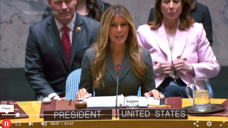 C’est en tant qu’épouse du président Donald Trump que Melania Trump a pu occuper le fauteuil américain, les États-Unis assurant la présidence tournante du Conseil pour le mois de mars. Une première pour une « first lady », selon l’ONU.