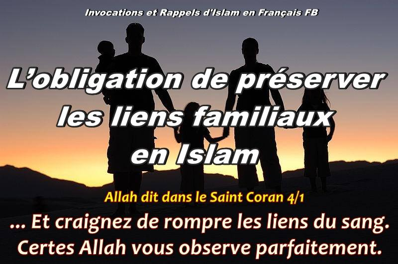 Allah Le Très-Haut a dit : Traduction relative et approchée : « Craignez Allah au nom duquel vous vous implorez les uns les autres et maintenez les relations avec les proches parents » [sourat An-Niçâ’ /3-36]. Certes, l’Islam incite à bien maintenir les relations avec les proches parents afin de raffermir les relations de parenté et d’étendre la bonne entente et l’affection entre les musulmans. Un jour, un compagnon a interrogé le Messager de Allah (QSSSL) en disant : « Ô Messager de Allah, indique-moi une œuvre telle que, si je la fais, j’entrerai au paradis ».