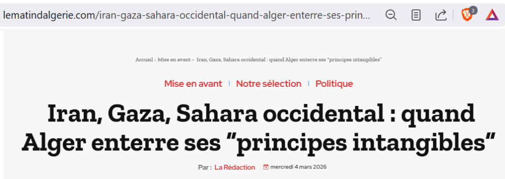 تسير « جزائر تبون الجديدة » الآن فوق حقل من الألغام. فبشأن الحرب في إيران، أو تغيير السلطة في سوريا، أو الحرب التي تشنها الجيوش الأمريكية والإسرائيلية ضد إيران، يبدو « تغيير المسار » أكثر إثارة للذهول.