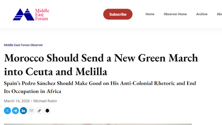 Une tribune publiée le 16 mars 2026 par le politologue américain Michael Rubin suscite de vives réactions en Espagne et dans les milieux stratégiques. Intitulé “Morocco Should Send a New Green March into Ceuta and Melilla”, le texte propose explicitement un scénario de pression civile sur les enclaves espagnoles, ravivant les tensions autour de ces territoires sensibles.
