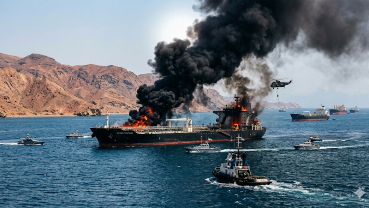 Selon les autorités de Dubaï, le navire Al-Salmi, battant pavillon koweïtien, a été visé par une attaque de drone alors qu’il transportait près de deux millions de barils de pétrole. L’incendie a pu être maîtrisé sans faire de victimes ni provoquer de fuite, mais la coque du bâtiment a subi des dégâts. Le pétrolier faisait route vers la ville chinoise de Qingdao.