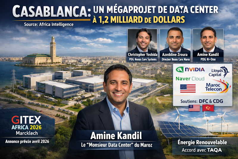 L’officialisation de ces nouveaux appuis doit intervenir lors du Gitex Africa 2026, prévu du 7 au 9 avril à Marrakech. L’événement réunira plusieurs figures clés du projet, notamment les ministres Karim Zidane et Amal El Fallah Seghrouchni, ainsi que Christopher Yoshida, président de Nexus Core Systems, et Azeddine Zroura, récemment nommé à la tête de la branche marocaine du groupe.